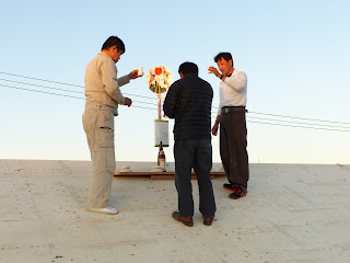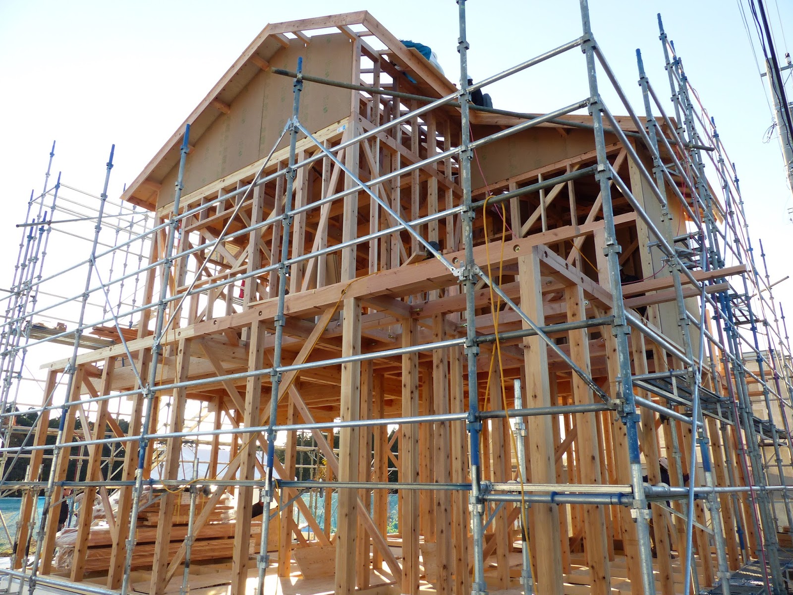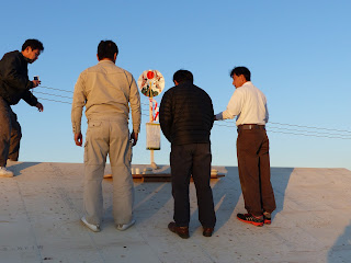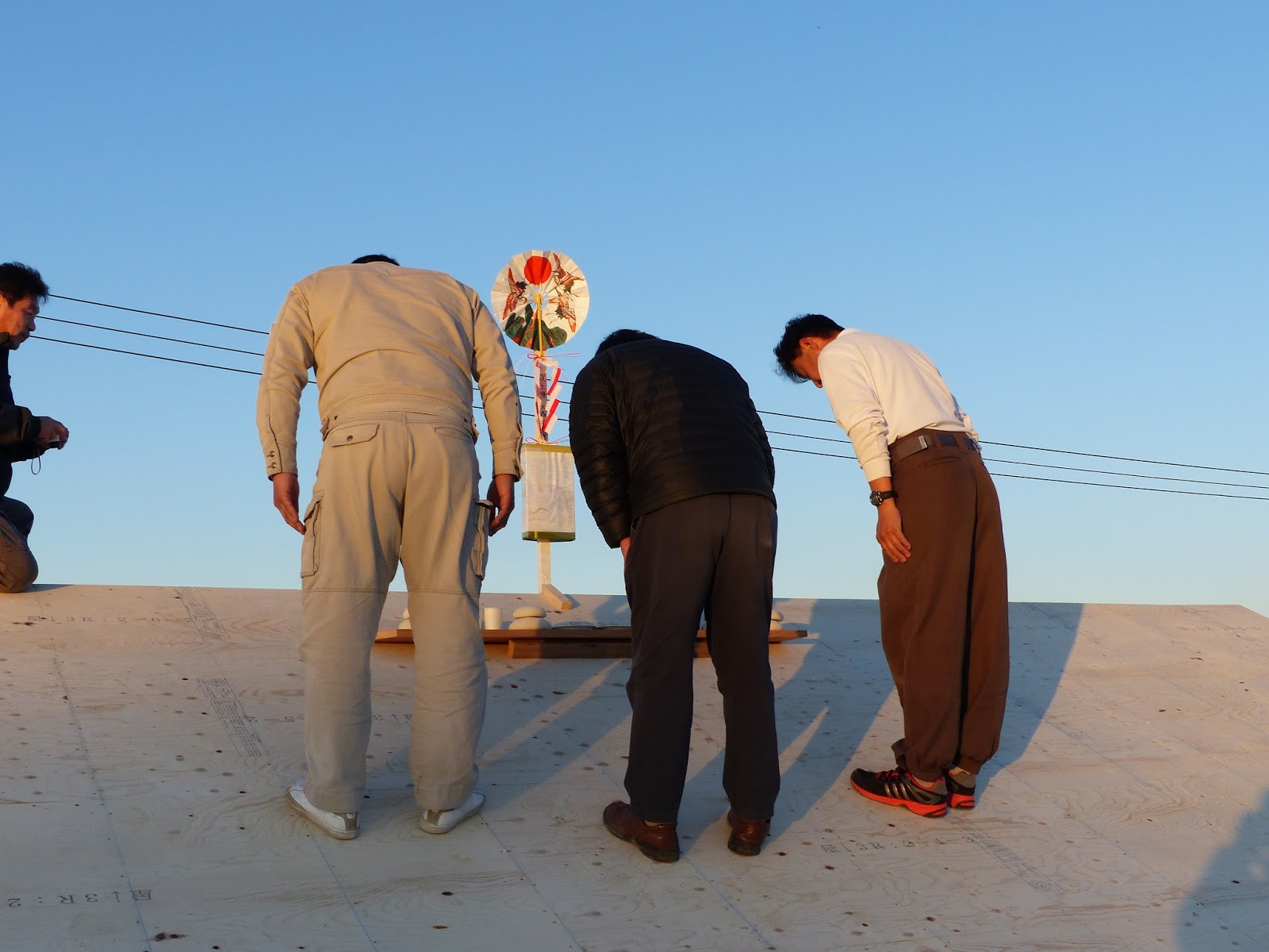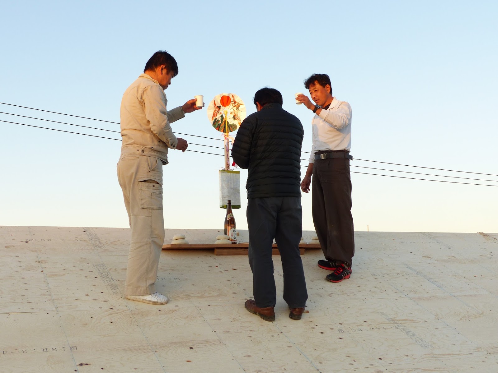 | 屋根の上にて上棟式です。 |