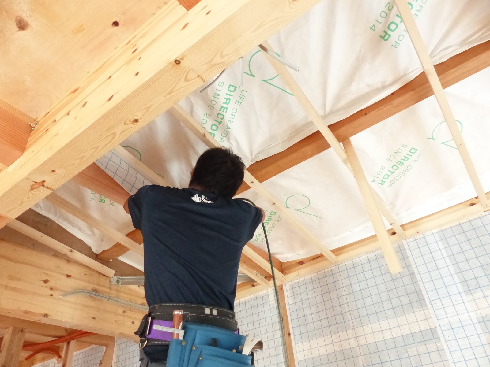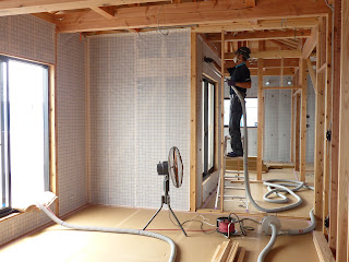 今回のS様邸は、建坪が広いので2日間の日程で、たっぷりと吹き込んで行きます。